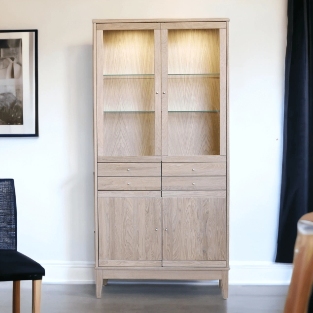 Massief beuken of eiken houten vitrinekast
